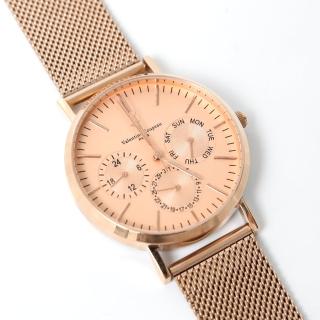 日本原裝機芯,真三眼 星期+日期+小時顯示,時尚玫瑰金米蘭錶帶