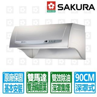 【SAKURA 櫻花】全國原廠安裝 90cm深罩式雙效除油健康取向除油煙機(R-3680SXL)