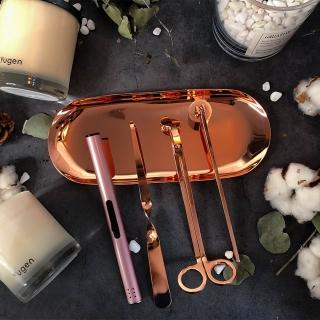 【香氛時光】香氛蠟燭 滅燭配件 蠟燭剪 燭剪 燭芯剪 點火器 燭芯鉤 托盤 滅燭罩 全套五件組(四色任選)