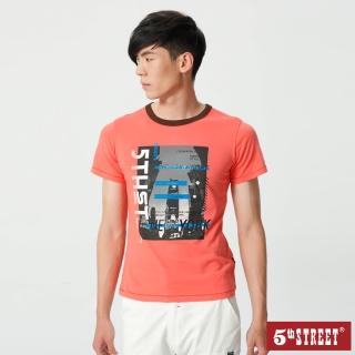 【5th STREET】男城市街景植絨短袖T恤-桃紅