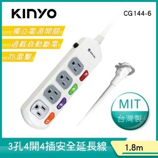 【KINYO】4開4插安全延長線1.8M(在家工作必備 CG144-6)