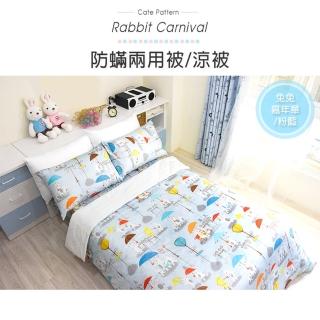 【Fotex芙特斯】兔兔嘉年華粉藍-純棉可愛系列-雙人防蹣兩用被(物理性防蹣寢具)