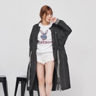 【PLAYBOY】民俗風格長版風衣外套(黑色)
