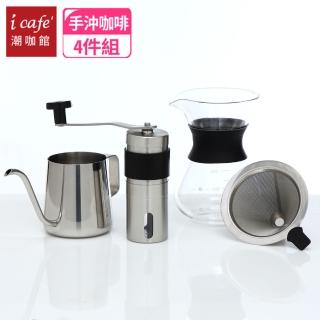 【icafe潮咖館】DIY手沖咖啡四件組(研磨機/手沖壺/濾網/分享壺)