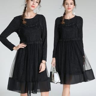 【麗質達人】3108長袖洋裝+網紗吊帶裙(M-5XL)