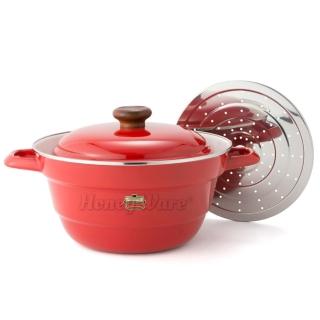 【FUJIHORO 富士琺瑯】BMP系列-27cm雙耳附蒸盤琺瑯萬用鍋5.4L-熱情紅(琺瑯/萬用鍋/蒸鍋/雙耳)