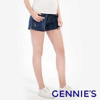 【Gennies 奇妮】微破損感撞色一體成型牛仔短褲(藍/深藍T4F13)