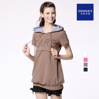 【Gennies 奇妮】連帽休閒風哺乳上衣(粉/咖/深藍/白GNA57)