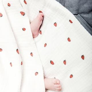 【BabyBites 鯊魚咬一口】純棉舒適透氣超萌圖騰包巾-甜甜草莓(包巾)