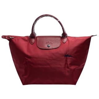 【LONGCHAMP】經典Collection系列刺繡摺疊暗釦/拉鍊短提把尼龍水餃包(中-石榴石紅1623619-C87)