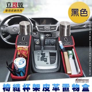 【安伯特】立可收 椅縫杯架皮革置物盒-快(2入組黑色-主+副駕各一)
