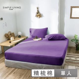 【Simple Living】精梳棉素色二件式枕套床包組 乾燥玫瑰紫(單人)