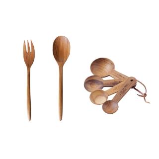 【泰國Chabatree】LONDON系列柚木沙拉叉匙組+柚木量匙組