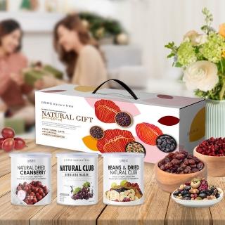 【自然時記】派對款x生機果乾禮盒-無籽葡萄乾375gx1罐+蔓越莓380gx1罐+綜合堅果300gx1罐