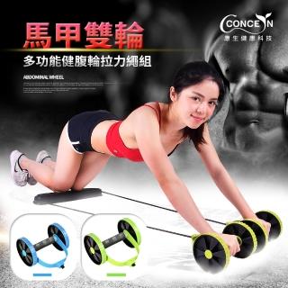 【Concern 康生】馬甲雙輪 多功能健腹輪拉力繩組-綠色 CON-FE603(纖腹激塑多種鍛鍊模式)
