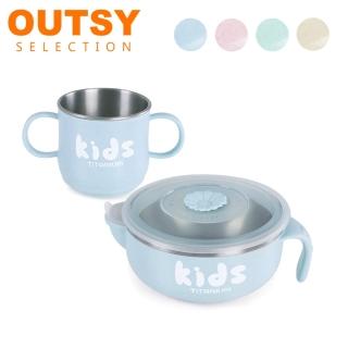 【OUTSY】純鈦兒童學習杯注水碗組 雙層(四色可選)