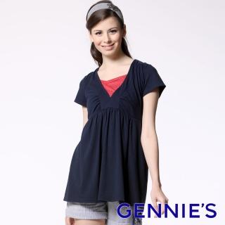 【Gennies 奇妮】簡約素雅哺乳上衣(藍/灰GNA24)