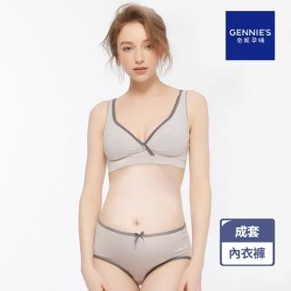 【Gennies 奇妮】莫代爾內衣褲成套組/搭配中腰內褲(條紋灰GA75+GB74)