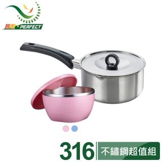 【PERFECT 理想】極緻316雪平鍋-20cm附蓋+極緻316隔熱碗-15cm一入附蓋(雪平鍋+隔熱碗組)