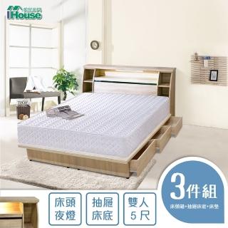 【IHouse】尼爾 燈光插座日式收納房間組(床頭箱+床墊+六抽收納-雙人5尺)