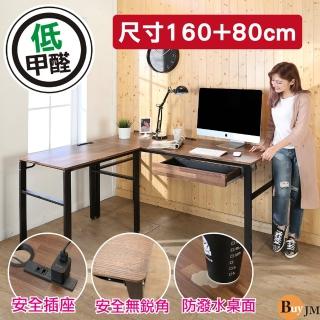 【BuyJM】工業風低甲醛防潑水L型160+80公分單抽屜附插座工作桌(電腦桌)