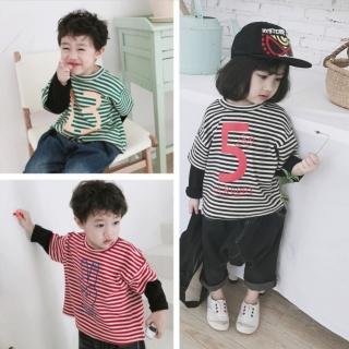 【小衣衫童裝】兒童假2件百搭條紋黑色長袖全棉T恤(1070831)