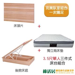 【綠活居】可娜 時尚3.5尺單人掀式床台組合(床片+後掀床底+艾柏 正三線防蹣透氣獨立筒床墊+五色可選)