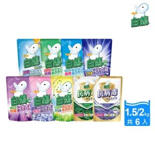 【白鴿】天然抗菌洗衣精-補充包2000gx6包 任選1箱(尤加利防蹣/ 香蜂草防霉/ 迷人小蒼蘭香氛/ 茉莉麝香)