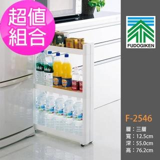 【日本FUDOGIKEN】寬12.5深55高76.2公分三層隙縫架F2546x1送M號收納盒x1(附滾輪)
