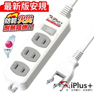 【保護傘】1開3插防火抗雷擊180度平貼插頭延長線1.8m(PU-2136)