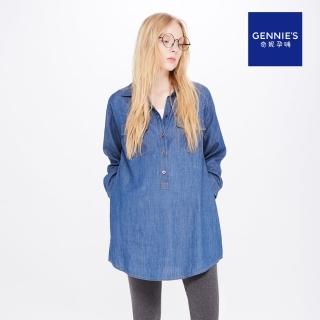 【Gennies 奇妮】開襟牛仔襯衫哺乳上衣(牛仔藍T3E12)