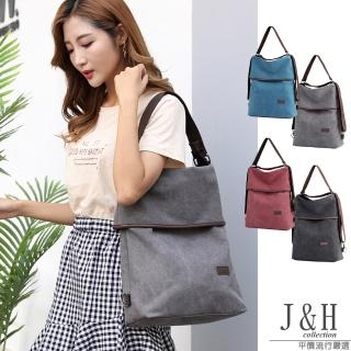 【J&H collection】日系輕盈多功能帆布兩用後背包(現+預 灰色 / 紫咖 / 藍色 / 黑色)