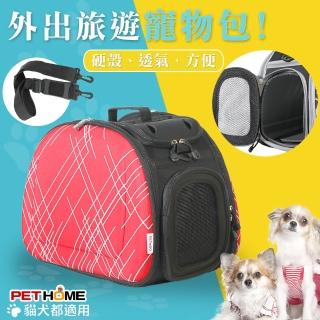 【PET HOME 寵物當家】輕巧 摺疊 透氣 寵物提包 - 紅交叉線