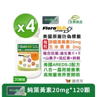 【赫而司】美國Kemin開明全素食膠囊(FloraGLO小分子游離型葉黃素玉米黃素山桑子茄紅素鋅銅硒(30顆*4罐))