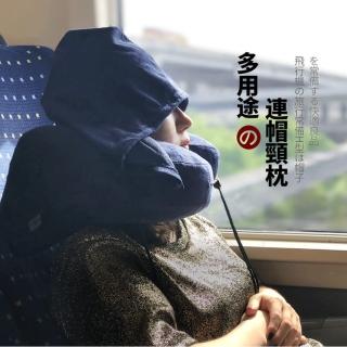 【艾玩客】日系舒眠多用途快速充氣連帽U型頸枕 車用睡枕 護頸枕 連帽頸枕(連帽升級版)