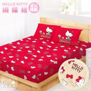 【享夢城堡】單人床包枕套3.5x6.2二件組(HELLO KITTY 蝴蝶結-米.紅)