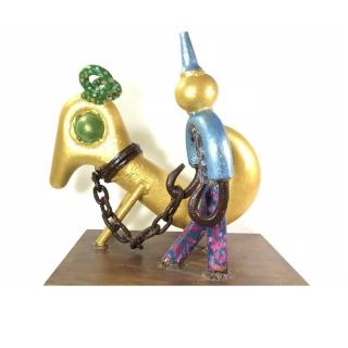 【貴人的心藝術 - 張坤貴】陪伴散步(創藝工坊 裝置藝術 大型藝術 人物系列 銅鐵合金 贈典藏書籍一本)