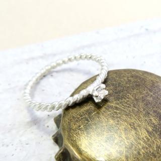 【ART64】戒指 麻花白色小鑽爪鑲戒 純銀戒指 單只