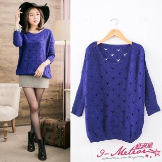 【I-meteor中大尺碼】網洞素色針織束口袖上衣PA2674(自信藍)