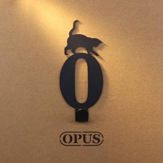 【OPUS 東齊金工】歐式鐵藝壁飾掛勾/無痕掛鉤/掛衣架/居家裝飾收納(HO-nb12-0B 當貓咪遇上數字0)