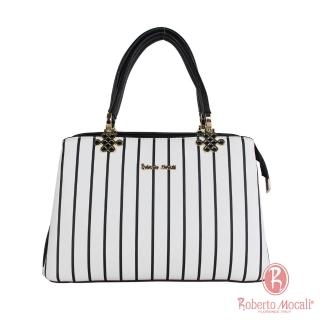 【Roberto Mocali】義大利諾貝兔黑白條紋花紋提把手提斜背包