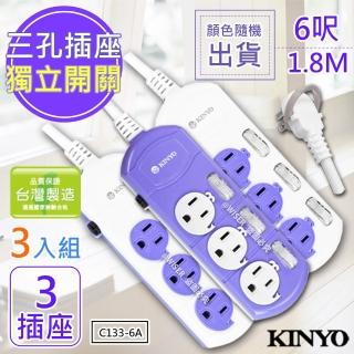 【KINYO】6呎 3P三開三插鯨魚造型安全延長線/台灣製造-3入組(C133-6A)