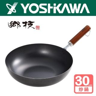 【YOSHIKAWA吉川鄉技】日本新潟燕三條 職人木柄鐵鍋(炒鍋30cm)