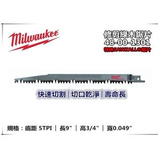 【Milwaukee 美沃奇】一卡5支裝軍刀鋸片 修剪綠木/漂流木鋸片 48-00-1301