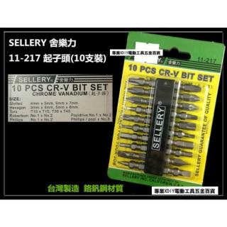 舍樂力 SELLERY 11-217 起子頭組 10支裝 電動起子用 雙頭 十字一字六角星型 電動十字頭