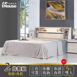 【IHouse】尼爾 燈光插座日式收納房間二件組 床頭箱+床底-雙人5尺