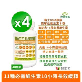 【赫而司】瑞士DSM多多緩釋B群30錠*4罐((高單位全素食維他命 高效防潮膜衣錠)增強體力營養補給健康維持)