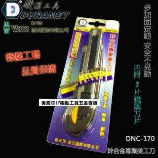 硬漢工具DURAMET 德國頂級 DNC-170 鋅合金專業美工刀 黑刃 內附頂級銳黑刀片 安全旋鈕 不晃動