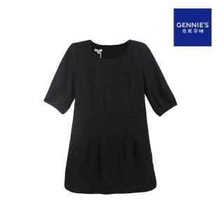 【Gennies 奇妮】緹花格紋長版上衣(黑G3453)