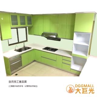 【大巨光】L型精緻歐化廚具/韓國人造石檯面/水晶門板/460公分/不含三機設備(L型廚具含電器櫃400+60CM內)